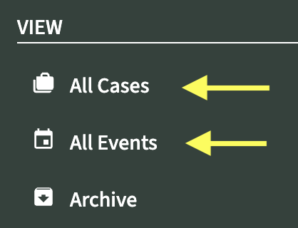 Encourage users to toggle between "My Events" and "My Cases" views for comprehensive oversight